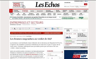 Σήμερα το απόγευμα, μετά το κλείσιμο των Xρηματιστηρίων, αναμένεται να ανακοινωθεί σύμφωνα με τη γαλλική εφημερίδα Les Echos η υποβάθμιση της γαλλικής οικονομίας απο τον οίκο αξιολόγησης Standard&Poor’s.