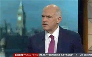 Σε ερώτηση για το αν οι εκλογές συνιστούν δημοψήφισμα, όπως έχει πει ο Βρετανός πρωθυπουργός και άλλοι αξιωματούχοι, ο κ. Παπανδρέου σχολίασε ότι κατά πολλούς τρόπους είναι ένα δημοψήφισμα, αλλά στην ουσία πρόκειται για κάτι διαφορετικό.