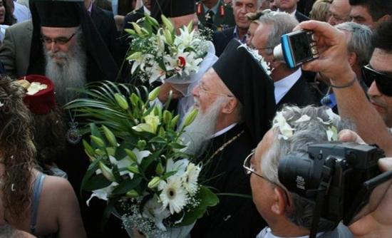 Μικρά παιδιά έραιναν τον Πατριάρχη του Γένους με άνθη ενώ οι πιστοί του φιλούσαν το χέρι και ζητούσαν την ευλογία του. Στα μπαλκόνια είχαν αναρτηθεί φωτογραφίες του Πατριάρχη ενώ κυμάτιζαν παντού ελληνικές σημαίες και εκείνες με τον δικέφαλο.