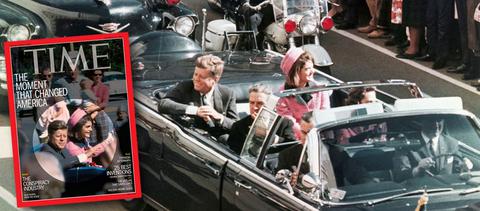 «H στιγμή που άλλαξε την Αμερική» τιτλοφορείται το εξώφυλλο του TIME. Ο Κένεντι χαμογελαστός δίπλα στην Τζάκι κατά την μοιραία αυτοκινητοπομπή στο Ντάλας του Τέξας, την μοιραία 22α Νοεμβρίου του 1963.