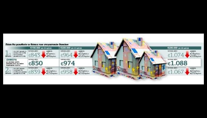 Ως προς τα επιτόκια, οι εκτιμήσεις των αναλυτών αλλά και των τραπεζιτών αναφέρουν ότι το βασικό επιτόκιο του ευρώ θα διαμορφωθεί στο 0,10% ή 0,15%, από 0,25% σήμερα. Πρόκειται για νέο ιστορικό χαμηλό επίπεδο, που διευκολύνει - έστω και λίγο - εκατοντάδες χιλιάδες δανειολήπτες με χρέη κυμαινόμενου επιτοκίου που εξαρτώνται από αυτό.