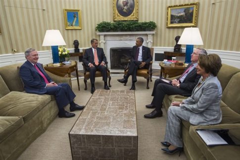 Στη συνάντηση μετείχαν ο Χάρι Ρέιντ, ο ηγέτης των Δημοκρατικών στη Γερουσία, ο Μιτς Μακόνελ, ο επικεφαλής των Ρεπουμπλικάνων στο ίδιο Σώμα, ο πρόεδρος της Βουλής των Αντιπροσώπων Τζον Μπένερ και η Νάνσι Πελόζι, η επικεφαλής των Δημοκρατικών στη Βουλή.