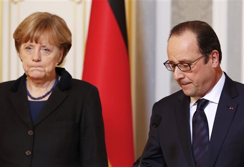 Με τον Φρανσουά Ολάντ συναντάται το μεσημέρι στο Παρίσι η καγκελάριος Μέρκελ. Η συνάντηση θα γίνει στις 13:00 (ώρα Ελλάδας) και θα ακολουθήσει γεύμα εργασίας. Το ζήτημα της Ελλάδας θα βρεθεί στην ατζέντα των επαφών, όπως διαβεβαίωσε τον Αλέξη Τσίπρα ο γάλλος πρόεδρος.