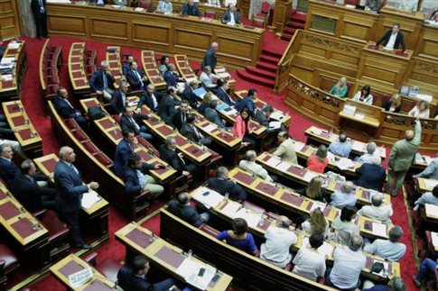 Σε εξέλιξη βρίσκεται η συνεδρίαση στην Ολομέλεια της Βουλής για την επικύρωση του τρίτου μνημονίου.