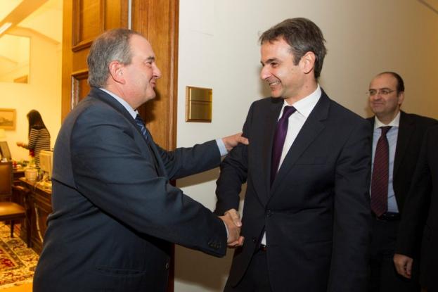 Ο πρόεδρος της ΝΔ Κυριάκος Μητσοτάκης συναντήθηκε σήμερα με τον πρώην πρωθυπουργό Κώστα Καραμανλή στο πολιτικό του γραφείο στην Παναγή Κυριακού.